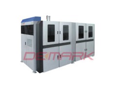 A. Brief Introduction DMK-L6 series are the most stable two-step fully-automatic Linear pet stretch-blowing machines(reheat). It has 6 cavities and the maximum capacity of the products is 700mL. It can blow bottles in shapes: Carbonated, mineral, pesticide, cosmetics, wide-mouth, hot filling, and other packing containers, which is made of plastic of crystalline type, such as PET and PP etc. 1). High Automatization 2). High Intelligence: The machine can be controlled through touch screen and running status is shown on it. 3). High Quanlity: Steady infrared heating system blowing and highly precise blow-mould closing system ensure quality. 4). High Speed: 2000BPH(2-cavity), 3000BPH(3-cavity), 4000BPH(4-cavity), 6000BPH(6-cavity). 5). No Contamination: Closed production zone, good self-lubrication system avoid contamination. 6). Low Cost: Low consumption of electricity, air and water. 7). High Transparency: Easy maintenance, absolute safely, visual inspection, low noise. B. Settings: A). PLC colour display: SIEMENS(GERMANY) B). Pneumatic parts: FESTO(GERMANY) C). Controller of preform transfer: Servo motor National(JAPAN) D). Other electric parts are all world-famous brand C. Machine Features: C. 1. Stable performance with advanced PLC. C. 2. Conveying preforms automatically with conveyor. C. 3. Strong penetrability and good and swift distribution of the heat by letting the bottles rotate by itself and revolute in the rails simultaneously in the infrared preheater. C. 4. High adjustability to enable the preheater to preheat preforms in shapes by adjusting the light tube and the length of the reflecting board in the preheating area, and eternal temperature in the preheater with an automatic thermostatic apparatus. C. 5. High safeties with security automatic-locking apparatus in each mechanical action, which will make the procedures turn into a state of safety in case of a breakdown in certain procedure. C. 6. No contamination and low noise with the air cylinder to drive the action instead of the oil pump. C. 7. Satisfaction with different atmospheric pressure for blowing and mechanical action by dividing the blowing and action into three parts in the air pressure diagram of the machine. C. 8. Strong clamping force with high pressure and double crank links to lock the mold. C. 9. Two ways of operating: Automatic and manual. C. 10. Safe, reliable, and unique design of the position of valve to make the air pressure diagram of the machine easier to understand. C. 11. Low cost, high efficiency, easy operation, easy maintenance, etc, with automatic technological process. C. 12. Contamination is avoided for the bottle body. C. 13. Ideal effect of the chilling with the chilling system. C. 14. Easy installation and starting C. 15. Low rejection rate: Less than 0.2 percent.