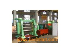 Rubber Calender 1. Application; Rubberizing and fractioning of textile material, rubberizing of wirecord fabric, sheet, and counter plate(embossed) of rubber material, separation of fabric and film, as well as joint of multi-layer laminate film. 2. General design: It mainly contains roller, rack, backplane, adjustment, device, transmission system, roller temperature control device, security device, lubricating device, etc. 3. Features: The roller is made of chilled cast iron alloys, whose work surface has high hardness, wear-resistent and durable life. Steam, cooling water, and heat-conducting oil can pass into the rollers cavity, so that the working temperature can be adjusted in order to meet the technical requirements. Roll spacing can be adjusted both by manual or electric mode. Roller bearings lubricating can adopt drier oil or dilute oil