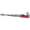 GF series plastic pipe material production line is mainly used in the area of agricultural water supply system, architectural water supply system, pavement of cables, etc. As well as PVC pipe material of all sorts of pipe caliber and wall thickness. This machine group consists mainly of twin conical (parallel) screws extruder, vacuum calibrating tank, haul-off unit, cutting unit, tilter, etc. Single screw extruder and haul-off unit have applied imported A/C inverter, both vacuum pump and driving motor have applied excellent products, the drawing machine includes two-claw type, four-claw type, eight-claw type, etc. Saw cutting and planet cutting can be applied. It is additionally applied with length measuring meter and thickness increasing device, the property of machine group is reliable, the production efficiency is high. With special device, it can produce inner wall spiral pipe, inner wall hollow pipe, and core layer bulpo pipe etc, it can also produce PP PE ABS PPR PEX, silicon core pipe and pipe material of other material. The planetary cutting machine is fully automatic computer digital control, it has such advantages of simple operation reliable property etc. It has reached world advanced level.