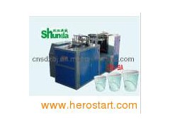 Paper cup forming machine machinery. It is an automatic paper cup machine to single PE coated paper cups for hot drink, like coffee, tea and So on. Specifications 1. Micro-computer controller and frequency changer, it may automatically transform the speed. 2. The machine makes paper sheet with paper bottom into paper cup 3. The heating system is electrothermal tube heating. 4. This machine is easy to operate. 5. It can work with digital counter (As you like). Paper cup forming machine machinery Other details 1. Packing: Wooden box packing (a 20ft can load two machines). 2. Leading time: 50days 3. Mould: One machine with one mould(according to customer's request)Item ZBJ-9A Speed 40-50pcs/min Cup size 2oz-12oz(mould can be replaced) Material Single PE coated paper Paper request 135gsm-300gsm Heating system Electrothermal Tube heating Output 380V, 50HZ, Three Phase four wire Overall dimensions(L*W*H) 2700*1500*1500mm Weight 1.5 Ton Operation life 8-10years
