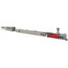 By combing foreign technology and domestic application, SS11-240 high speed profile production line is developed, which boasts new style, convenient operation, lower consumption, high quality and longer longevity. For this production line, the mould can match in with a low speed with fast withdrawal. The exchange of rubber block can be done on line for the haul off machine, all these applications are aiming for personalization.Length of calibration table(mm) Haul force(KN) Haul speed(m/min) Length o belt(mm) Diameter of saw(mm) 11000 30 0.7~7 2600 500