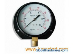 Case sizes: 1.5", 2", 2.5", 3.5", 4", 4.5", 6", 8", and 10" Case material: Steel case, steel black case, steel chrome plated case, steel gold plated case, brass polished case, stainless steel case, all this can take with front flange, back flange and U-clamp. Bezel material: Steel black bezel, steel bezel, chrome plated bezel, brass bezel, steel roll ring (or bayonet threaded ring) Flange: Both front or black flange are available with black steel, chrome-plated steel or stainless steel. Tube and socket: Brass, stainless steel, steel with nickel plated, 316 stainless steel, phosphor bronze and more Movement: Brass, stainless steel Connection: 1/8", 1/4", 1/2", 3/8", NPT, BSP or BSPT dependent on model and size; Bottom, back left and right side connection Available ranges: 30Hg "- 0-15-10000PSI Windows: Acrylic, glass and polycarbonate lens are available Accuracy: ASME B40.1 Grade B(+3-2-3%) Options and accessories: Custom dial, metric scale, DIN 2.5% accuracy, recalibrators, restrictors, special connections and more