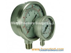 The series main contain follow general specification. Case Sizes: 1.5", 2", 2.5", 4", 6" Pressure Range: With range from 30inHg(vacuum) through 15000psi Bourdon Tube: With SUS316 material, range from vacuum through 1000psi in C-form, soft soldered, range above 1500psi in helical, silver soldered Movement: With SUS304 stainless steel standard material Cases and Ring: With SUS304 staunless steel material, the ring which retains the window is bayonet threaded type, dull or polished case and ring Liquid Filling: With or without liquid, 99.5%glycerine. Others available Connection: With SUS304 stainless steel standard material, bottom mounting and backside mounting available, 1/8", 1/4", 1/2", 3/8"PT, NPT, BSP are the standard threads, available for suitable dial diameter Dials: Dials are uniformly graduated and have highly legible black markings. In single scale(psi, bar Kpa, Mpa, or kg/cm2) or dual scales as request Windows(Lens): PC, tempered glass or safety glass Pointer: With a fixed pointer or with micro adjustable Accuracy: Standard by ASME B40.1 Options: Many different styles and materials are offered, open gauges with and without device and solid front or back flange gauges or with U-clamp. Custom dial face, special connections, e-mail us or our distributor your logo or draw for special connection