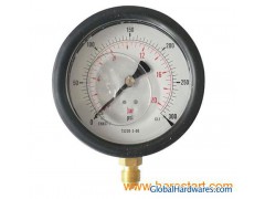 Pressure Gauge (MT-BS-001) Liquid pressure gauges are high quality gauges that are designed to perform in bugged applications and harsh environment, especially in easy pulsation and vibration. The media is not corrosive to brass Type: Liquid filled pressure gauges Case sizes: 1.5, 2, 2.5, 3, 4 and 6 inches Cases and Ring: The ring which retains the window is snap-on type, chrome-painted or black finish steel material as resquest Bezel material: Stainless steel bezel Tube and socket: Phosphor bronze and brass Liquid Filling: With or without liquid, glycerine., silicone oil Connection: 1/8, 1/4, 3/8, 1/2, inches BSP, NPT or BSPT Type: Bottom and back Scale ranges: Vacuum and compound -1-0-600 bar Window material: PC, anti-explosion Accuracy: ASME B40.1 Grade B (3-2-3%) Options and accessories: Custom dial, metric scale, DIN 2.5% accuracy, front or back flange, U-Clamp, restrictors, special connections and more