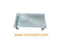 Overall Size: 167mmX97mmx27mm Material: Aluminum 5052 Finish: Bright anodization We make and export wide range of custom-made precision metal stamping part, deep drawn stamping part, stamping parts assembly, metal weldment, metal spinned part, precision machinng part in CRS, HRS, galvanised steel, stainless steel, aluminum, brass, copper, etc. Different finish/surface treatment will be provided upon request. Semi-finished and finished metal products are welcome, too.
