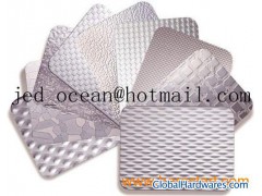 Contact emamil: jed_ocean@hotmail.com TYPE --- stainless steel embossed sheetTHICKNESS --- 0.3mm-3.0mmWIDTH --- 100-1500mmSTANDARD SIZE --- 4'*8ft'(19*2438mm), 4*10ft(1219*3048mm), 1000*2000mm, 1500*3000mmGRADE --- 201,201, 304,430,316,410SURFACE --- 2B, BA, 8K, HL, No4, PVD colors, etching, embossed, sand blasted, vibration, anti-fingerprint.COLOR --- Golden, Black , Sapphire Blue, Brown, Rose gold Bronze, , Purple,gray, silver, Champagne violet, blue diamond, etcAPPLICATION --- Industry, construction, decoration, luxury indoor and outdoor decoration, elevator decoration, advertising billboardORIGIN --- POSCO, Bao steel, TISCO, LISCO, JISCOPACKING --- Standard export sea-worthy packingPAYMENT TERMS --- T/T, L/CDELIVERY TIME ---7-25 days, according to the quantity