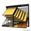 Size: 2600x1150x2200mmBoard Size:1210x1210mmCapacity: Hold up to 9 pieces hardwood and laminate sample boardsColor: BlackFinishing: Power coated.Feature: Sideling tile displayStyle: Floor displayFunction: Display hardwood, cork and laminate, ceramic tile, stone, wood as well.Strength, sturdy and durable Easily to be assembled.
