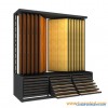 Color: BlackFinishing: Power coated.Capacity: Hold up to 35 (14+21) pieces hardwood and laminate sample boardsFeature: Floor standing displayStyle: Flooring displayFunction: Display hardwood, cork and laminate, ceramic tile, stone, wood as well.Strength, sturdy and durable Easily to be assembled.