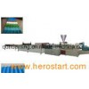 PVC corrugated sheet production line Wave plate has an excellent corrosion resistance, weather resistance, easy processing, low cost and many other characteristicsm abd is widely used for roof material of workshops, warehouses. Production line consists of: 1)Extruder: Single-screw extruder PP / PE / PC, conical twin-screw extruder PVC. 2)T die head: The hanger-type flow structure, a suitable compression ratio to ensure the stability of material flow evenly. 3)Calibrating molds: Rational design, the unique design of the cooling flow to ensure the accuracy of products, 4)Hauling machine: Roller traction, using high quality NBR rubber roller, pneumatic adjustment, and frequency speed adjustment. 5)Cutting Machine: Knife cutting, fast, good accuracy. Add to Basket