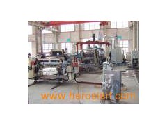 Extrusion Pet sheet production line machine Machine introduction: 1)Screw with special mixing and plasticization function; 2)Coat hanger type die with two throttle design enable to regulate the sheet thickness accurately; Horinzontal, vertical or 45° Incline type three rollers calenders may be lifted freely; Sheet thickness shall be regulated by screw and pressing roller; 3)Separate roller temperature control system to control the temperature of pressing roller to gain even sheet thickness; 4)Exact slicing machine, board length and quantity; 5)Winder with big torque motor, and its speed and tension force adjustable; 6)Automatic metering to set the length of product The main technique parameter Width of sheet: 400-2000mm Production Capacity: 30-600kg/H Production line speed: 25M/Min Add to Basket