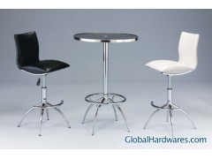 Table Top:Tempered black printed glass. Stainless ring. (70cm DIA)