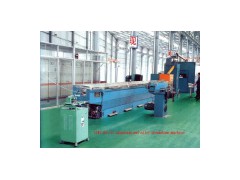 This machine takes the advantages of the newest M85 type high speed copper rod drawing machine produced by Germany Nihoff Company. It is mainly used to make copper rod become copper wire from 9.5 to φ 4.8_φ 2.65mm. And in the drawing process, it can realize continuous annealing. Drawing drum adopts in-line type inclined array, and it draws continuously. Mechanical electrical speed matches balancedly. It is easy to operate, and can change die fastly, change bobbin to take up automatically without stopping machine. This machine is composed by pay-off device, drawing wire main machine, accumulator, dual bobbin automatic take-up device, drawing wire lubrication oil system, gear lubricating oil system, pointer and stripper, electrical control system etc. The equipment can realize die change rapidly and automatic dual bobbin take up. The whole equipment function is advanced and reliable, electricity auto control degree is high. It's an ideal drawing wire equipment.