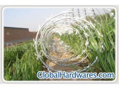 Razor barbed tape is a kind of modern security fencing materials fabricated with razor-sharp steel blade and high-tensile wire. Barbed Tape can be installed to achieve the result of frightening and stopping to the aggressive perimeter intruders, with piecing and cutting razor blades mounted at the top of the wall, also the special designs making climbing and touching extremely difficult. The wire and strip are galvanized to prevent corrosion. Currently, barbed tape has been widely used by many countries in military field, prisons, detention houses, government buildings and other national security facilities. Recently years, barbed tape has apparently become the most popular high-class fencing wire for not only military and national security applications, but also for cottage and society fence, and other private buildings.