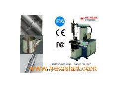 Suitable for welding of thin plates within 1mm; 3D work bench and the master unit are integrated; Can weld space curve and welds of high variable, applied in medical, electronics, battery, instrument, etc. Suitable materials and application Suitable for welding of kettle, vacuum cup, stainless steel bowl, sensor, tungsten wire, high power diode (triode), aluminum alloy, laptop shell, mobile phone battery, door handle, mould, electric apparatus fittings, filter, nozzle, stainless steel products, golf head, zinc alloy artworks Weld point, straight line, circle, square or any plane graphs drawn by AUTOCAD; Weld vertical track. Technical parameters Model HT-WD400(A) Maximum laser power 400W Laser wavelength 1064nm Laser welding depth ≤ 4mm Pulse width ≤ 20ms Laser welding frequency ≤ 100Hz Adjusting range of light spot 0.1-3.0mm Size of light spot 0.2-3.0mm Integrity power ≤ 14KW Power supply 380V/3-phase/50Hz/60A Maximum bearing of standard work bench ≤ 100kg Stroke of work bench 200*200mm to 1200*1200mm Repeating precision of work bench ± 0.01mm Positioning precision of work bench ± 0.02mm Sighting positioning system Red light, CCD monitor system (optional rotary clamp) Cooling method Water cooling Master unit dimensions 1600*800*1800mm