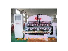 Multi-Heads CNC 4 axis Machine (FC-3030ST-10) Features of the machine: This machine is the classic type specially designed for the classical furniture carving, hollows out. The water-cooled spindle motor with high power frequency conversion, high speed drive motor, using of LEADSHINE precise driver, all of above ensure works in high speed and accuracy, the speed can reach as fast as 10m/min, this is also leading in all the processing equipment. The standard layout of three-headed carving spindle is even more powerful, and ensure the high efficiency in batch orders. Performance parameter: Max running speed: 50m/min Max engraving speed: 25m/min Max Feed-in height: 150mm Resolution: 0.025mm Command Language: Code G*. U00*. Mmg*. Plt Software operating environment: Windows98/2000/XP Working Voltage: AC380/50Hz Spindle power: 3.0kw Spindle rotating speed: 6000-24000rpm/min Work Mode: Servo(Rack transmission) *Parameter could be customised.