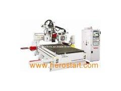 CNC ACT MACHINE CENTER WITH With Germany Benz Pneumatic Line Drilling Head and Angular Saw FC-2513ST Detailed Product Description CNC Router Working Center With Germany Benz Pneumatic Line Drilling Head and Angular Saw, Yaskawa Servo motor and Syntec control Scope of application: Widely used in wordworking industry, door and furniture making, arts and crafts line, soft metalwork line, can process double-color board, PVC board, mould forming, board, copper, aluminum, fireproofing board and so on. Machine Features: 1. X Y Z axes travel: 1300mm× 2500mm× 300mm. 2. Three axes all use original Taiwan imported Hiwin square rails, high precision, wear risistant, long life. Auto oil sliders, with four line of roll balls, high loading capacity, and moving stable. 3. X, Y axes high accurate pinion and rack transmission. Z axis use screw rod leading transmission, original Taiwan imported TBI screw rod, large thread pitch, could maintain high precision with high speed. 4. Italy original imported HSD air-cooling spindle 9.0KW, very powerful, suit for long time working, high precision, high efficiency, long life, and with small working noise. 5. Taiwan CHENSHANG bamboo hat shape auto tool changer with 8 cutters, change cutters in 5 seconds 6. ISO30 cutter holders. 7. Taiwan Delta frequency converting system, electric high frequency shielding system, 8. Germany Benz Pneumatic line drilling head, seven in horizontal and two in vertical, could do positive and vertical CNC drilling on various kinds of materials. 9. German Benz angular saw, diameter 125mm, could cut non-metal materials' cutting. 10. All axes are driven by Japanese Yaskawa high power servo motor and Yaskawa servo drivers. Large torque, high precision, fast and stable performance. Y axis uses double servo motor in-phase drive that ensure the machine's equality and smoothly running. Three axes move stable with high speed. The highest speed could reach 60m/min. 11. Taiwan Yonghong Planet speed reducer, protect the high speed servo motor while electricity suddenly stopped. 12. Three axes dust preventation, and auto oil lubrication, increase the rail and screw rod lives. 13. Thick steel seamless welded, whole machine using scaping process, high-temperature aging treatment, rigid and not deformed. Gantry welded by 200*200mm retangle square tubes, T-shape heavy structure table support, could bear large working load. 14. Vacuum absorb table, avoid fixing the clamps, save the time of changing work piece, and improve your working efficiency a lot. We use 20mm thick engineering plastic bakelite sheet, precision machining to 8 sections, could absorb various shapes' materials. Self-colding no oil TONGYOU 5.5KW 400Liter vacuum pump, could continously working in long time. Separate air reserver enlarge the vacuum pump's subpressure, and make the vacuum more powerful, convenient, and stable. 15. Wholistic processing before putting on the vacuum table. Make sure the table surface at the same level. 16. High flexibility interference shielding cable wire, big inside diameter, loose space, reduce friction, make sure the electricity will not stop in high speed. 17. Nylon tube protect the wires went into the spindle. High flexibility and beautiful. All servo wires are through high flexibility and interferance shielding test, cold, high temprature and interferance resistant, could fold more than 12million times. 18. Auto-oiling lubrication system easy to operate, greatly improve the life of the various components of the machine MORE INFOMATION PLEASE CONTACT US.