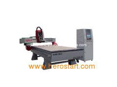 FANCH CNC router ========================= FC-1325MHD. Features of machine. 1. The famous brand high power wind-cooling spindle which imported from Italy are with high precision, long time using, smoothly running, and good startup performance, big moment, can totally make out high speed of this machine, higher efficiency. 2. Automatic tool-change systems like a bamboo hat, which can contain 8 knives, only need 10 seconds the tool can be changed. It has special knife table for focusing that can make up the error of the knives' length 3. The whole lathe is thickening, scientific welded, so it will not become distorted. 4. Using imported straight-quadrate rail, two rows and four lines-rolling block devices that ensure its high loading capacity and moves steadily. The high quality steel guide with high precision and intension ensure the precision and wear ability and its service time is 10 times higher than round guide. The imported screw rod is very precise. 5. Using the Taiwan Syntec control system with high performance, high quality and better maintenance it can control the 3D-processing which process, engrave and cut quickly and smoothly. 6. Software has good compatibility and is compatible with several design software such as type 3/Artcam/castmate/wentai CAD/CAM software 7. Vac-sorb table that made of eletricity-wood has high adsorbability, which can strong adsorb different areas'material, high density, not change shape. 8. Using automatic oiling-lubrication system, which can be controlled by a button? It is easy to use and maintain. 9. Adopt Japanese servo drive system with large power. Y axis uses double-motor drive. The running speed can reach to 60m/min above when no material are processing. 10. Using imported transducer and servo-drive and motor imported from Japan, the electric parts of Siemens. 11. Using precise automatic fixing knives system makes the operation more quickly that increase the efficiency.