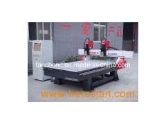 TWO SPINDLE CNC ROUTER Two-head CNC router Model FC-1325MD Scope of application: Our products have been widely applied in industrial board cutting, mould manufacturing & processing, wooden products doors & woody handicrafts processing, building decorating, upholstery & furniture processing, metal, stone, acrylic, glass, copper, double-color board, PVC borad, fireproofing board, aluminum and advertising products processing, etc. Features of machine: 1. Imported high power 4.5kw wind-cooling spindle, it can adopts 2 different knives to process both separately or the same parts. Higher efficiency, moving stability which totally make out high speed of this machine. 2. The whole lathe is thickening steel structure, scientific welded, so it will not become distorted. 3. Using imported straight-quadrate rail, two rows and four lines-rolling block devices that ensures its high loading capability, moves stability, high precision and wearability. 4. Imported Taiwan high precision screw rod is very precise when processing. 5. Adopt domestic advanced controlling system, it can control the 2 heads separately. Good capability and powerful functions. 6. Vac-sorb table that made of high strength hard plastic has high adsorbability, which can strongly adsorb different areas' materials, high density and non-deformed. 7. Adopt domestic big moment motor driver and high precision driver system.