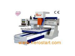 Table movement engraving, use large pitch precision lead screw drive, steady movement, high working accuracy, steady performance. The whole machine uses high quality seamless welded steelstructure, the assembly contact surface use scraping process, the whole structure high-temperature aging treatment, rigid and not deformed. This machine adopts Italian high-speed air-cooled spindle motor, spindle cooling fully guaranteed, can work long time. Use imported Japanese Yaskawa Servo drive system, torque, high precision, fast and stable performance. Table is vacuum adsorption countertops which is an international technical leader, made of high strength rigid plastic, high-absorption of different sizes of materials, density, non-deformation, Auto-oiling lubrication system, easy to operate, greatly improve the life of the various components of the machine.