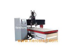 TABLE MOVING CNC ROUTER MODEL FC-2513TW Japan Yaskawa Servo motor, 9KW Italy HSD spindle Features of machine: 1. Table movement engraving, use large pitch precision lead screw drive, which is imported from Taiwan, steady movement, high working accuracy, steady performance. 2. The whole machine uses high quality seamless welded steel structure, the assembly contact surface is used scraping process, the whole structure high-temperature aging treatment, rigid and not hot deformed. 3. This machine adopts Italian high-speed air-cooled spindle motor, spindle cooling fuly guaranteed, can work long time. 4. Use imported Japanese Yaskawa Servo drive system, torque, high precision, fast and stable performance. 5. Use Taiwan Syntec controlling system, good compatibility, compatible with Type3/Artcam/Castmate/Artcut/CAD/CAM and other design softwares. Can control the completion. Of multi-dimensional SD processing, and can do fast, smooth three-dimensional processing, carving and cutting. 6. Table is vacuum absorption counter tops which is an international technical leader, made of high strength rigid plastic, high-absorption of different sizes of materials, high density, and non-deformation. 7. Auto-oiling lubrication system, easy to operate, greatly improve the life of the various components of the machine. 8. Standard three-spindle and automatic rotation. Able to carry out positive and laterial drilling, carving, engraving, milling surface and so on. To meet the needs of large and medium processing enterprises.