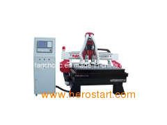 DOUBLE HEAD CNC ENGRAVER Model FC-1325MT Scope of application: Our products have been widely used in industrial board cutting, mould manufacturing and processing, wooden products processing, building decorating and furnishing, stone, glass, copper, aluminum and advertising products processing, etc. Machine Features: 1. The two spindles could be used alternatively and automatically and could be placed with two different blades to work one by one. This ensures the machine work more efficiently. 2. Imported 25mm linear rails, four lines of ball bearings in the sliders to enhance the bearing capacity and the working accuracy and the life of the machine. 3. The lathe is welded by thickened steel to avoid distortion. 4. Original Taiwan imported leading screws, high accuracy in working. 5. Taiwan syntec control system has good compatibility and is compatible with Type3, Artcam, Castmate, Artcut and many other design softwares. It can control the 3D-processing which process, engrave and cut quickly and smoothly. 6. Vacuum table which is made of bakelite plate(optional) has good absorption, which can strongly absorb different areas' material, high density, and not distorted. 7. Adopt Japanese servo drive system with large power. Y axis uses double-motor drive. The running speed can reach to 60m/min above while travelling. 8. Taiwan Delta frequency transformer, Simens electrical components, high performance, and perfect in anti-interference.