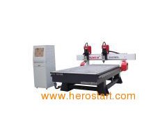 FC-1325MD Scope of application: Our products are widely applied in industrial board cutting, mould manufacturing & processing, wooden products processing, building decorating & furnishing, stone, glass, copper, aluminum and advertising products processing, etc. Features of the machine: 1. Imported high power 4.5kw wind-cooling spindle, it can adopt 2 different knives to process both separately or the same parts. Higher efficiency, moving stability which totally make out high speed of this machine. 2 The whole lathe is thicking steel structure, scientifically welded, so it will not become distorted. 3 Using imported straight-quadrate rail, two rows and four lines-rolling block devices that ensure its high loading capacity, moves steadily, high precision and wearable. 4 Imported Taiwan high precision screw rod is very precise when processing. Adopt domestic advanced controlling system; It can control the 2 heads separately. Good capability and powerful functions. 5 Table is vacuum adsorption countertops which is an international technical leader, made of high strength rigid plastic, high-absorption of different sizes of materials, density, and non-deformation. 6 Using Japanese servo drive system with high power, Y axis uses double-motor drive. The running speed can reach to 60/min above when no material are processing.