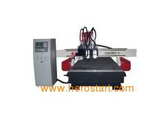 The specificaton: 1. Servo motors(Japan Yeskawa) 2. Italy HSD 6.0 KW air-cooling spindles x 3, two are regular with different tool, another one for the lateral to make holes for lock set 3. Taiwan Syntec control system 4. Imported Taiwan square rails 5. Imported pinion and rack transmission 6. Vacuum table with 5.5kw vacuum pump Gantry-type character 1. Gantry-moving and whole structure is seamless welding steel-structure. It uses the T-shape heavy duty structure, adopted steel seamless welded, hard and Non-Deforming. 2. Imported 4.5kw air-cooling spindle, the three spindles could be used alternatively and automaticlly and could be placed with two different blades to work one by one. This ensures the machine work more effeciently. 3. Adopt Japanese servo drive system with large power. Y axis uses double-motor drive. The running speed can reach to 60m/min above when no material are processing. 4. Using the Taiwan Syntec control system with high performance, high quality and better maintenance It can control the 3D-processing which process, engrave and cut quickly and smoothly. It uses separate keyboard control: Easy, convenience to learn, user can master the operation quickly, stronger independence 5. Software has good compatibility and is compatible with several design software such as type 3/Artcam/castmate/wentai CAD/CAM software 6. Advanced three-dimensional curve prediction procedure, polyline stable, which ensure curve operating speed and accurate. 7. Vac-sorb table with 8 vacuum zones that made of eletricity-wood has high adsorbability, which can strong adsorb different areas'material, high density, not change shape. 8. Using imported straight-quadrate rail, two rows and four lines-rolling block devices that ensure it's high loading capacity and moves steadily. The high quality steel guide with high precision and intension ensure the precision and wearability and it's service time is 10 times higher than round guide. The imported screw rod is very precise. 9. Variety functions: Can process drilling, hole drilling, engraving, through-carved, Facemilling and so on. Satisfied the request of large and medium-size processing enterprises. Especially, it can make the whole in the lateral of the wooden plate for the keyhole. 10. The spindle for the lateral, it can be changed like the other two spindles, so there will be 3 spindles with 3 different tools for different modelings which is usually need for one wood plate for the wooden door and cabinet door.