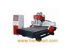 Scope of application: Widely used in woodworking line, furniture processing industry, upholstery, decorative woodwork, wooden doors, handicrafts, metal and stone product. 1. Japan Yeskawa Servo motor 2. Two Italy HSD 6.0KW air-cooling spindles(can chang automaticly with two different tools) 3. Taiwan Syntec control system 4. Vacuum table 5. Dust collect system 6. Imported Taiwan square rails, high accurate pinion and rack transmission. 7. Seamless welding steel structure(T-shape heavy duty structure) 8. Working area: 1300x2500x220mm Features of the machine: 1. T-shape heavy duty structure. The lathe welded use high-quality steel, by secondary quenching processing that ensures the high stability. 2. Italy HSD 6.0kw air-cooling spindle, two spindles could be used alternatively and automatically and could be placed with two different blades to work one by one. This ensures the machine work more efficiently. 3. Equip Japan Yeskawa servo motors, high accurate and speed, can make efficiency increase 50%. 4. Overstrong suction vacuum fittings, install negative pressure reservoir equipment, 400L large space vacuum pump, the parts orientate fastness, swift. 5. Using high accurate pinion and rack transmission. The highest speed is 30m/min. It can clearly engrave the 1mm small word. 6. X, Y, Z axises chosen imported straight moving rails, smoothly running, without maintainion, long used. 7. Advanced industrial controlling system is compatible to many dictate formats that can operate after accident or next day processing so it is very convenient. 8. Advanced three-dimensional curve prediction procedure, polyline stable, which ensure curve operating speed and accurate. 9. Variety matches: Can install horizontal milling, straigjt drill, horizontal drilli, excavate saw, hob, two axis, three axis, Automatic Tools Changing, ect. 10. Variety functions: Can process drilling, Hole drilling, engraving, through-carved, Facemilling and so on. Satisfied the request of large and medium-size processing enterprises.