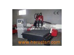FANCH CNC ROUTER Gantry-type character ===================== 1. Gantry-moving and whole structure is seamless welding steel-structure and it is firm and will not become deformed. 2. This machine adopt high speed imported spindle, Japan servo motor, high accurate and speed. 3. Advanced Document Preprocessing function help the users correct the fault of processing document 4. Advanced three-dimensional curve prediction procedure, polyline stable, which ensure curve operating speed and accurate. 5. Variety matches: Can install horizontal milling, straigjt drill, horizontal drilli, excavate saw, hob, two axis, three axis, Automatic Tools Changing, ect. 6. Variety functions: Can process drilling, Hole drilling, engraving, through-carved, Facemilling and so on. Satisfied the request of large and medium-size processing enterprises. Performance parameter ============================================== Outer dimension: 1700*3000*1600mm XY axis travel: 1300*2500mm Z axis travel: >220mm Max running speed 60m/min Max engraving speed: 30m/min Max feed-in height 220mm Resolution: ± 0.001mm Command code: G. Uoo. Mmg. Plt Software operating environment: Windows98/2000/XP Power (not include spindle0 4.5KW Work voltage: AC380V/50Hz Spindle power: 6.0kw(HSD) Spindle rotating speed: 6000-18000rpm/min Work mode AC servo.