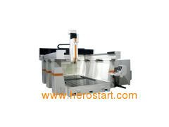 CNC high-speed machining machine (EPS engraver) Work area: 2500*5000*800mm Main feature: A) This machine is all-cover sealed, dust prevention at maximum extent, avoid to pollute the environment. B) Spindle adopt Italy air-cooling, standard BT50 taper socket. Spindle head with good rigidity, change cutter easily, enough cutter clamping force, can steady processing with φ 40× 400 long cutter; Spindle motor 6KW, can satisfy requirement of machining power. C) Spindle head complete shut-off, install fans for better cooling and dust prevention. D) Spindle install oil-cooling system to long time working E) Spindle, rail and ball screw install dust prevention huff equipment, avoid foam dust enter into the screw rod, rail and spindle to cause damage F) Rail and screw rod install auto lubrication system G) X axis adopt double screw driver to keep balance and steady J) Control box with auto airconditioning system, better cooling, long time work K) Heavy steel whole structure, large scale working area L) Taiwan imported spindle, screw rod, rail M) Adopt Japan NSK bearing.