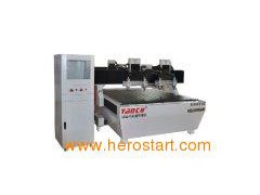 Scope of application: Widely used in advertising, woodwork processing line, arts and crafts line, metalwork line, can process double-color board, PVC board, mould forming, copper, aluminum, fireproofing board and so on. Features of the machine: High Efficiency = the efficiency of 1 set equal to 4 common models. High Performance = Double Z axes each has three spindles on one plate, high speed linkage control system, Y axis patent double screw rod lead transmission. High Quality = Three axes imported straight quadrate rail / ball screw, Japanese servo driving system. High Guarantee = Work piece damage due to machine quality problems will make unconditional equivalent compensation. 1. The lathe is founded by high-quality steel that ensures the high stability, seamless welded, whole machine using precision machining process, high-temperature aging treatment, rigid and not deformed. 2. All the three axes are using Taiwan imported straight-square rail, two rows and four lines-rolling block devices that ensures its high loading capability, moves steady, high precision and wear ability. 3. Adopt Japanese Yaskawa servo drive system, high torque and precision, fast and stable performance. 4. All axes use Taiwan TBI high precision screw rod, high accuracy in working. Y axis double screw rod lead transmission. 5. Six 2.2KW water cooling spindles, little noise and It can work continually without maintaining. 6. Aluminum table, fix by clamp. Wholistic processing before putting on the aluminum sectional material. Make sure the table surface at the same level. 7. Advanced Ncstudio control system, work through computer, separate control cabinet. Good capability with Type3, Artcame, Castmate, Artcut, CAD, CAM and other design software. It can control the 3D-processing when process, engrave and cut quickly and smoothly, can operate after accident or next day processing so it is very convenient. 8. Intelligent protection for working table that can prevent misuse or software errors from damaging the surface. Its protection of step beyond the boundary avoids crashing while design area beyond processing area.