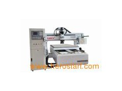 TABLE MOVING CNC ROUTER MODEL FC-2513TW Japan Yaskawa Servo motor, 9KW Italy HSD spindle Features of machine: 1. Table movement engraving, use large pitch precision lead screw drive, which is imported from Taiwan, steady movement, high working accuracy, steady performance. 2. The whole machine uses high quality seamless welded steel structure, the assembly contact surface is used scraping process, the whole structure high-temperature aging treatment, rigid and not hot deformed. 3. This machine adopts Italian high-speed air-cooled spindle motor, spindle cooling fuly guaranteed, can work long time. 4. Use imported Japanese Yaskawa Servo drive system, torque, high precision, fast and stable performance. 5. Use Taiwan Syntec controlling system, good compatibility, compatible with Type3/Artcam/Castmate/Artcut/CAD/CAM and other design softwares. Can control the completion. Of multi-dimensional SD processing, and can do fast, smooth three-dimensional processing, carving and cutting. 6. Table is vacuum absorption counter tops which is an international technical leader, made of high strength rigid plastic, high-absorption of different sizes of materials, high density, and non-deformation. 7. Auto-oiling lubrication system, easy to operate, greatly improve the life of the various components of the machine. 8. Standard three-spindle and automatic rotation. Able to carry out positive and laterial drilling, carving, engraving, milling surface and so on. To meet the needs of large and medium processing enterprises.