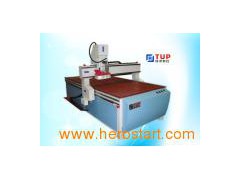 CNC cutting machine (R-1325) Applications; Cut and Engrave for: Synthetic glass materials: Acryl, Light guide, diffusion board etc., Thermoplastic materials: PVC, ABS, PF, PE, PU; Compound materials: Fiber glass, Rostone, Compact grade laminate, Insulation materials, bakelite; Wood materials: Solid wood, MDF, Flakeboard; Light metal materials: Aluminium profile, Copperplate. Features; 1. Cast steel body with aging treatment, solid and durable; 2. Air patenting spindle, Imported ceramic bearing, with good thermal protection function, the machine will stop automatically when the temperature is more than 80, durable and powerful; 3. Taiwan AMT/STF25MM linear slide, high precision, heavy load and durable; 4. Leisai driving system, step working mode with very good resolution and nicely orientation; 5. DSP control system with USB port, can be running without PC; 6. Transmission device: X, Y spindle are both high precision rack transmission, Z spindle is ATM screw transmission from Taiwan; 7. Electric appliances and motor control protection are matching to European Union IP54 standards; 8. Use special belt handle cable, which has function of Anti interference, Anti static, high flexibility, will not broke after long time use; 9. Vacuum adsorbed worktable: Adapt European design standard, dividing worktable into 4 adsorbed areas, 32 adsorbed holes in each, which insures the adsorbability to be equal; 10. Support TYPE3, CAXA, MASTERCAM, ARTCAM, UG etc. Software.