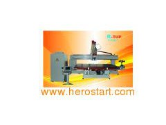Applications: Synthetic glass materials: Acryl, Light guide, diffusion board etc. Thermoplastic materials: PVC, ABS, PF, PE, PU; Compound materials: Fiber glass, Ro-stone, Compact grade laminate, Insulation materials, Bakelite; Wood materials: Solid wood, MDF, Flake board; Light metal materials: Aluminum profile, Copperplate Features: Vacuum worktable in European standard, orientated air cylinders are around worktable which make the materials can be orientated easily and fast. Body structure: Cast steel body with aging treatment, solid and durable. Linear guide rail: Taiwan linear guide rail with high precision, heavy loading and durable. Driving system: Japan Yaskawa Servo motor for 3 axis, very good resolution and nice orientation. Control system: Taiwan Syntec system with visualization, timely simulation function and good pretreatment ability. VisualizationVisualization Electric appliances combinations: Electric appliances and motor control protection are matching to European Union IP54 standards. Worktable move mode, very steady structure, suitable for heavy cutting. 8 tools change automatically.