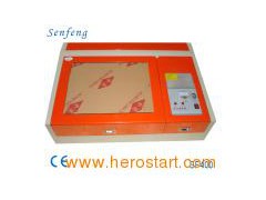 SF400 Laser engraving machine: Specification: Laser power: 50W Table size: 400*360mm Dimension: 980*680*280mm Packing dimension: 1150*880*480mm Resolution ratio: 0.0125mm Minimum shaping character: Chinese: 2*2mm; Letter: 0.8*0.8mm Power supply: 220v/50Hz Support Format: BMP, PLT Gross Power: 300W Applicable material: Rubber, acrylic, fabrics, leather, paper, bamboo and wooden product, film, canvas, etc. Applicable Industry: Garments sampling, large width tailoring, leather industry, shoemaking, decoration, furniture, advertisement, packing and printing, model industry, craftwork and gift, etc.