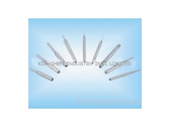 Coil winding nozzle Hard Alloy Nozzle(TungstenCarbide nozzle) is used on coil winding machine. Coil winding nozzle(Hard alloy nozzle)It is made precisely of hard alloy and enjoys the hardness up to HRA90. Two terminals andinnerle are all receive mirror surface treatment to ensure enameled wire makes no scrape. High hardness, resistance to flexure, block and impact. Coil winding nozzle (Hard alloy nozzle)Features: 1. High Wear Resistance This is assured by the choice of materials for wear elements possessing a minimum hardness in excess of Vickers 1, 000 (HRC 70). 2. Scratch-Proofing Eliminate wire insulation film damage, low friction resistance, stable wire tension. The wire-guiding surfaces are mirror finished by diamond lapping to a surface roughness of 2 -4 micro inches Ra or better, material permit. 3. Straightness and Stiffness Straightness and Stiffness are defined by the wire exit being concentric and inflexible with respect to the nozzle locating? . In plain terms, the wire should exit from the nozzle concentric to the locating? To within 0.02 mm, with or without load. A geometric characteristic presentation is shown at upper left. Concentricity to within 0.01mm. 4. Precise Exit Radii Because the coil winding nozzle's Exit Radii governs the angle of the wire exit from one coil to the next, it should be monitored to + / - 0.025 mm. This is done by digital measurement, shown at upper right.