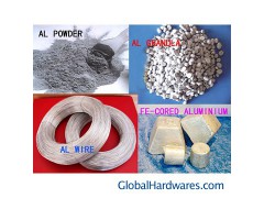 We can supply pure Al wire(dia6-16mm), ingot, cake, granule, chip, powder, as wellas iron cored Al ingot, Al alloy (FeSiAl, AlMn, AlSiMn AlMnMg, ect) speciallyused as deoxidant for steel making.