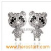 Item No: ED1056 Brand Name: Minlong Jewelry-Registered TM Metal: Brass(Copper Alloy) Earring type: Stud Earrings Material Type: Copper Alloy Stone: Zircon Good quality: Eco-Friendly (Nickel Free, Lead Free) Max width&Length: 0.8*1.3CM Net Weight/pair: 2.27g Finish: Rhodium Plated Little Bear style stud earrings, brass based metal, white and black stones MOQ: 10-30 dozens (360 pairs) Sample time: 2-7 days Delivery time: 15-20 days Features: Fine Auality CZ Stones, Copper with long lasting Rhodium plating&K Gold plating. Nickel Free, Lead Free. Anti-allergic to the Majority Quality Control: 1). Preproduction samples will be available before the production 2). The production will be process by both machine and skilled handmade workers 3). The extra pieces will be ready as backup products 4). The products will be double checked before the packing