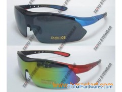 Material: Plastic frame Look sleek and stylish in these sunglasses Sports performance sunglasses designed for dedicated athletes Built for speed drive, sunglasses dynamic construction gives enhanced vision and fit One piece polycarbonate lens with flash mirror and 100% UV400 protection Non-toxic, scratch and impact resistant Various colors and logo services are available Certifications: CE and FDA