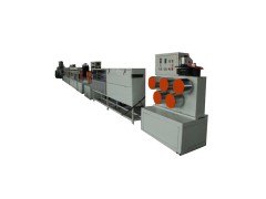 PET strap production line With the advanced technique, new product and production line appears more and more. This PET strap production line adopts new technique and design, with high capacity and good quality. Its following advantages: 1. Accurate dosing and raw material blending 2. Preheat and dry circulating automatically 3. Even plastication, stable extrusion and exact temperature control 4. Measuring pump ensure consecutive and stable production 5. Big hauling force strething device and insulation oven 6. Big capacity stainless steel water trough, automatic liquid level control