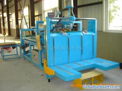 Semi-automatic carton pasting machine: It is the equipment used for the final procedure of carton manufacturing, and is mainly used for adhesion of single-sheet corrugated carton board to meet the production demands of several varieties and medium and small batches, it is applicable to such products as food and cotton textile packing requirement, and is fairly ideal carton equipment presently. The machines has such advantages as high production efficiency, low labor intensity, simple operation, stable performance and reliable operation, and is the necessary equipment for packing carton industry.Semi-automatic carton pasting machine TJ-HADetails of major parts1Gear reduction unit is gear reduction unit from Taiwan.2Taiwan Tiande button switch, travel switch, terminal desk3 Taiwan Yangming photoelectric switch and counter, Taiwan Shilin contactor4Conveying belt from Taiwan5Pasting head assembly is precisely fabricated with imported material, is wearing-resistant and corrosion-resistant6 Automatic counting for later section, the finished product sheet number (1-99 sheets) can be laminated and conveyed to the end of the conveyer based on the setup quantity and bundling is convenient.7Bower provides auxiliary air drying function, speed up adhesion of the carton and reduce poor products.8 It only two operators from adhesion of semi-finished product to placing the finished-product, operation is simple and convenient, and it can reduce salary.9 Paper feeding part can achieve automatic counting, it will automatically feed out the paper sheets that has been laminated for bundling, it can reduce the salary for carton counting worker10It can provide additional bundling function in middle section to effectively prevent scissors clamping for cartons. Applicable scopeMachinery specificationMaⅹ(L+W)ⅹ2 2460mm Power 5HP Min(L+W)ⅹ2340mm Length 4500mm Maⅹ(L+W)ⅹ2 1515mm Width 2100mm Min (L+W)ⅹ2 240mm Weight 2000kgs High of feeder
