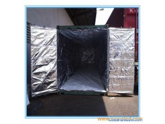 Name: 20GP/40GP/40HQ Container liner Structure: Woven fabric+Aluminum Foil+Woven fabricColor: Green, Blue, Silver, Grey, Black, OrangeSize:6.5m*2.4m*2.45m/12.5m*2.45m*2.5m/12.5m*2.45m*2.75m Features 1 Total climatic protection for products which are more climatically sensitive than others, where polyethylene liners are not suitable 2 Tailor made to suit individual bulk head design 3 Tailor made to suit individual filling and emptying requirements 4 Significant reduction in product damage costs Applications1 Chemicals & pharmaceuticals 2 Dried foods 3 Flavours / ingredients 4 Pigments / dyes