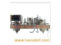 Product Description Machine Features: 1. Stable and reliable functions, security and alarming functions 2. Filling volume precisely and seals cups perfectly 3. Stepless speed control, can adjust filling time. 4. Alumite as moving moulds, extraodinary durable and sanitary 5. All the components are made by famous company in the world. 6. CE approved. 7. Equipped with noise reduction device, comfortable for operators. Applications: "Xiangyi machinery" filling machine has wide applications: 1. Filling materials: Liquid e. G. Water, juice, Yogurt, etc Semi-liquid e. G. Paste, jelly, ice cream, pudding, powder, jam, porridge, etc. 2. Container: Cups, PE/PP/PET bottles, glass bottles, paper bottles, jars, plastic boxes, bowls, etc. Normally functions: 1. For rolling film type: 1) cup falling 2) filling 3) date printing 4) seal twice 5) cutting 6) ordinary outputting 2. For pre-cut lid type: 1) cup falling 2) filling 3) put pre-cut lid 4) seal twice 5) date printing 6) ordinary outputting (Functions can be added or decreased according to your requirements) Working processing: 1. Rolling film type Cup falling-filling-date printing-seal-cutting-output 2. Pre-cut lid type: Cup falling-filling-put pre-cut lid-seal-date printing-output Configuration: 1. Cylinder: Airtac 2. PLC: Omron/Mitsubishi/Simens (optional) 3. Touchscreen: Omron/Mitsubishi/Simens (optional) 4. Relay: Omron 5. Tempt. Controller: Yatai