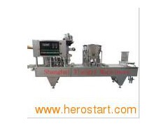 Product Description Machine Features: 1. Stable and reliable functions, security and alarming functions 2. Filling volume precisely and seals cups perfectly 3. Stepless speed control, can adjust filling time. 4. Alumite as moving moulds, extraodinary durable and sanitary 5. All the components are made by famous company in the world. 6. CE approved. 7. Equipped with noise reduction device, comfortable for operators. Applications: "Xiangyi machinery" filling machine has wide applications: 1. Filling materials: Liquid e. G. Water, juice, Yogurt, etc Semi-liquid e. G. Paste, jelly, ice cream, pudding, powder, jam, porridge, etc. 2. Container: Cups, PE/PP/PET bottles, glass bottles, paper bottles, jars, plastic boxes, bowls, etc. Normally functions: 1. For rolling film type: 1) cup falling 2) filling 3) date printing 4) seal twice 5) cutting 6) ordinary outputting 2. For pre-cut lid type: 1) cup falling 2) filling 3) put pre-cut lid 4) seal twice 5) date printing 6) ordinary outputting (Functions can be added or decreased according to your requirements)