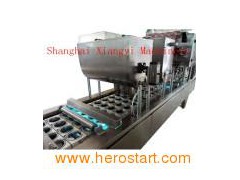 Product Description Machine Features: 1. Stable and reliable functions, security and alarming functions 2. Filling volume precisely and seals cups perfectly 3. Stepless speed control, can adjust filling time. 4. Alumite as moving moulds, extraodinary durable and sanitary 5. All the components are made by famous company in the world. 6. Equipped with noise reduction device, comfortable for operators. 7. Suitable to fill juice, water, sauce, etc to cups in small scale. Applications: "Xiangyi machinery" filling machine has wide applications: 1. Filling materials: Liquid e. G. Water, juice, Yogurt, etc Semi-liquid e. G. Paste, jelly, ice cream, pudding, powder, jam, porridge, etc. 2. Container: Cups, PE/PP/PET bottles, glass bottles, paper bottles, jars, plastic boxes, bowls, etc. Normally functions: 1. For rolling film type: 1) cup falling 2) filling 3) date printing 4) seal twice 5) cutting 6) ordinary outputting 2. For pre-cut lid type: 1) cup falling 2) filling 3) put pre-cut lid 4) seal twice 5) date printing 6) ordinary outputting (Functions can be added or decreased according to your requirements) Working processing: 1. Rolling film type Cup falling-filling-date printing-seal-cutting-output 2. Pre-cut lid type: Cup falling-filling-put pre-cut lid-seal-date printing-output
