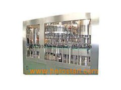 Glass bottle beer filling machine BGF16166 Technical Introduction This machine is my company's introduction of German technology, combined with the characteristics of beer production industry, designed to develop small-scale beer filling equipment. The machine has excellent mechanical operation reliability, improved rinsing, filling, cover screwing, disinfection sterilization and other functions. Structural Features 1, The rinsing machine using high-strength stainless steel bottles of spring-loaded folders, to ensure a stable reversal of the glass bottles. The nozzle is a plum-like structure can wash every corner of the sidewall and bottom to make the bottle clean. 2, Filling machine with spring-type mechanical lifting equipment to upgrade glass bottles, large bearing support floundering in the vat and use of guide-rod in the orientation of the structure, there are pre-cover features. 3, Using high-precision mechanical filling valve, with cylinder liquid level and the back pressure controlled by a variable signal proportional. Fast, stable, accurate, to be vacuum one at a time. 4, Stainless steel plunger and mechanical stirring gland-type magnetic reasonable cap to ensure that the gland is healthy and reliable. Hopper and the cap taking- cover, capping transmitted by magnetic. The capping is reliable and automatic unloading, reducing the rate of broken bottles. 5, Before the capping, use hot water bubble set to displace bottlenecks air, ensuring the oxygen content of less than 0.15mg / L. 6, Filling machines includes broken bottle automatically stopping valve, broken bottle washing, and foam automatically exhausting device. 7, With perfect CIP cleaning function, and capable of rinsing filling pipes with acid, lye liquid and hot water. 8, All the materials in contact with the valves, tanks, pipes are made of stainless steel N304 materials, inside and outside the wall of mirror-polished, ensuring it is healthy. 9, Manually dry oil lubrication system to make sure equipment maintenance is more convenient. 10, The whole operation adopts advanced man-machine interface, PLC control, frequency conversion stepless speed regulation and other automatic control technology, with no bottle no open valves, no stamps; No cap no operation, and other security protection. 2. Main technical parameters Washing heads: 16 (diameter: φ 640) Filling valve heads: 16 (diameter: φ 640) Capping heads: 6 (diameter: φ 240) Capacity: 4000 bottle per hour Applicable bottle: Bottle height 200~350mm; DiameterΦ 52~Φ 84mm Asepsisair consumption: 0.4m3/min(0.4~0.6Mpa) CO2 consumption: 18g/100L Water consumption: Vacuum pump 0.2m3/h; Blowing 0.3m3/h Operating voltageAC 380V Controling voltageDC 24V Power: Main motor 2.2 KW Hopper motor 0.37KW Vacuum motor 0.75 KW Spray pump 0.55Kw (buyer prepare) Electric Chain motor 0.75Kw (buyer prepare) Overall dimension: 2300× 1800× 2300(L× W× H) Weight: 3000 Kg 3. Main equipments 1Touch Screen: Mitsubishi 2PLC controllerInverters: Mitsubishi 3Proximity switches, contactors, circuit breakers: Japan's Omron 4Cylinder, solenoid valve: Taiwan