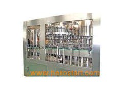 Beer bottle filling machine BGF16166 This machine is my company's introduction of German technology, combined with the characteristics of beer production industry, designed to develop small-scale beer filling equipment. The machine has excellent mechanical operation reliability, improved rinsing, filling, cover screwing, disinfection sterilization and other functions. Structural Features 1, The rinsing machine using high-strength stainless steel bottles of spring-loaded folders, to ensure a stable reversal of the glass bottles. The nozzle is a plum-like structure can wash every corner of the sidewall and bottom to make the bottle clean. 2, Filling machine with spring-type mechanical lifting equipment to upgrade glass bottles, large bearing support floundering in the vat and use of guide-rod in the orientation of the structure, there are pre-cover features. 3, Using high-precision mechanical filling valve, with cylinder liquid level and the back pressure controlled by a variable signal proportional. Fast, stable, accurate, to be vacuum one at a time. 4, Stainless steel plunger and mechanical stirring gland-type magnetic reasonable cap to ensure that the gland is healthy and reliable. Hopper and the cap taking- cover, capping transmitted by magnetic. The capping is reliable and automatic unloading, reducing the rate of broken bottles. 5, Before the capping, use hot water bubble set to displace bottlenecks air, ensuring the oxygen content of less than 0.15mg / L. 6, Filling machines includes broken bottle automatically stopping valve, broken bottle washing, and foam automatically exhausting device. 7, With perfect CIP cleaning function, and capable of rinsing filling pipes with acid, lye liquid and hot water. 8, All the materials in contact with the valves, tanks, pipes are made of stainless steel N304 materials, inside and outside the wall of mirror-polished, ensuring it is healthy. 9, Manually dry oil lubrication system to make sure equipment maintenance is more convenient. 10, The whole operation adopts advanced man-machine interface, PLC control, frequency conversion stepless speed regulation and other automatic control technology, with no bottle no open valves, no stamps; No cap no operation, and other security protection. 2. Main technical parameters Washing heads: 16 (diameter: φ 640) Filling valve heads: 16 (diameter: φ 640) Capping heads: 6 (diameter: φ 240) Capacity: 4000 bottle per hour Applicable bottle: Bottle height 200~350mm; DiameterΦ 52~Φ 84mm Asepsisair consumption: 0.4m3/min(0.4~0.6Mpa) CO2 consumption: 18g/100L Water consumption: Vacuum pump 0.2m3/h; Blowing 0.3m3/h Operating voltageAC 380V Controling voltageDC 24V Power: Main motor 2.2 KW Hopper motor 0.37KW Vacuum motor 0.75 KW Spray pump 0.55Kw (buyer prepare) Electric Chain motor 0.75Kw (buyer prepare) Overall dimension: 2300× 1800× 2300(L× W× H) Weight: 3000 Kg 3. Main equipments 1Touch Screen: Mitsubishi 2PLC controllerInverters: Mitsubishi 3Proximity switches, contactors, circuit breakers: Japan's Omron, Siemens 4Cylinder, solenoid valve: Taiwan