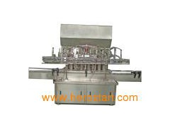 Lubricating oil bottle filling machine This machine is a linear type filling machine. It adopts electromechanical integration control system. It is mainly used to filling a variety of viscous, non-viscous, corrosive and non-corrosive liquids. It is suitable for small quantitative packages of vegetable oil, lubricants, chemical liquids, and so on. Characters: It is equipped with original German Siemens PLC as control system, which can ensure the machine has good stability. Motors and pneumatic controlling elements are all imported brands, such as AIRTAC, Siemens, etc. Photoelectric detection system is from German products with high sensitivity. The advanced anti-leakage device ensures no oil leakage occurs in filling process, so it is economical and save oil source, and keep filling area and conveyor clean. Delivery is stepping, primary delivery adopts variable frequency control which has higher efficiency. The following process (stamping, ink-jet printing, light-check and case-sealing, etc) adopts special double dislocation connection, which makes sure the whole production line more accurate and smooth. High and low double speed filling avoids overflow and increase the production efficiency. The control system has intelligent protection function. When there is any problem, bell alarms and machine stops work. The problem is shown on PLC screen. Filling volume is adjustable. When changing for another filling volume, only need write the pointed filling volumes into PLC control, so the change is easy and simple. Optional devices: Automatic bottle unscramblering and feeding device, automatic continuous capping machine, screw cap machine and pressing cap machine, leakage detecting machine, aluminum foil sealing machine, ink-jet printing machine, automatic unpacking machine, packing machine and pack - sealing machine, etc.
