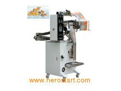 Product Description This machine suitable for packing solid material, such as puffy food, shrimp roll, peanut, puffy rice etc which shape is roll, grain, slice. The machine had fine characteristic, which are high accreted, reasonably constructed, easily handled and maintained.Workable disparting and joining It owns simple circuity, outstanding funvtion.Once completion on production:Adding automatically complete bowl making, air (or nitrogen) adding, fillinf, date printing, sealing, outputting. Parameter Model DXD-400B Packaging speed 15-60 bag/min Filling width 180-400 Film thickness 0.04-0.07 Film roll diameter 320 Power supply AC220V 50Hz 2.5KW Overall dimension (L)1100(W)800(H)2150 Machine weight About 400Kg