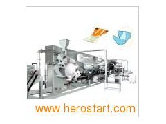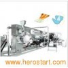 I. Functions and Features High-speed crushing machine Upper sanitary paper apply Cotton core formed by net wheel SAP adding device and quantity can be adjusted Knurling and compacting core device are provided Down sanitary paper apply Cotton core cutted Stand cuff Back film apply and unwind Surface, absorbing core, back film are compound and compactted Side waist stick apply, cutting short and transfer Production are folded lenghwise and compacted Production are finally cutted Production are three folded Production are conveyed Pneumatic system Elastic waist apply with rectify system II. Technical Parameters Power: 380V 50Hz Capability: 80-220 pcs /min Design line speed: 100m/min Rate Power: 128KW Qualification: ≥98% Weight: 30T Size(without crushing machine)(m): 21× 2. 5× 3(L× W× H)